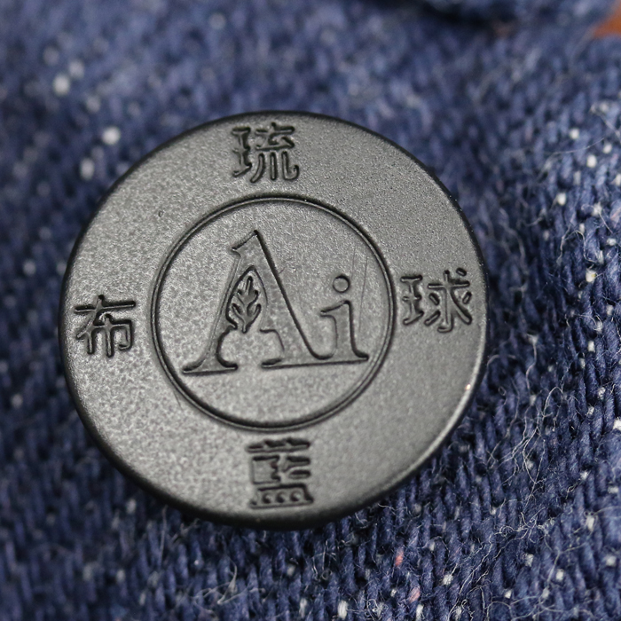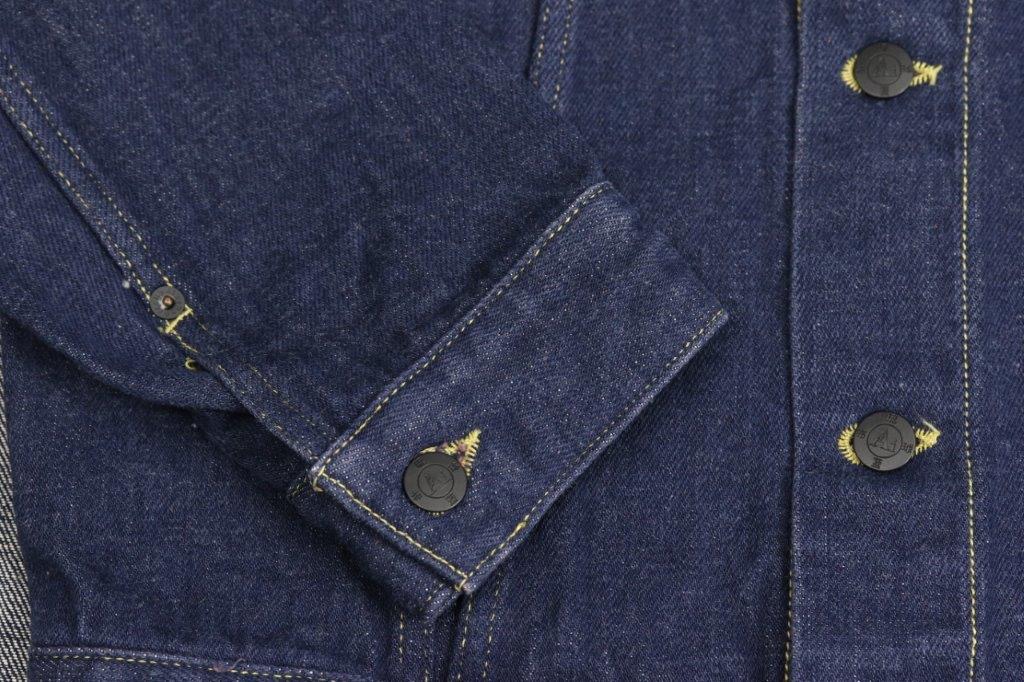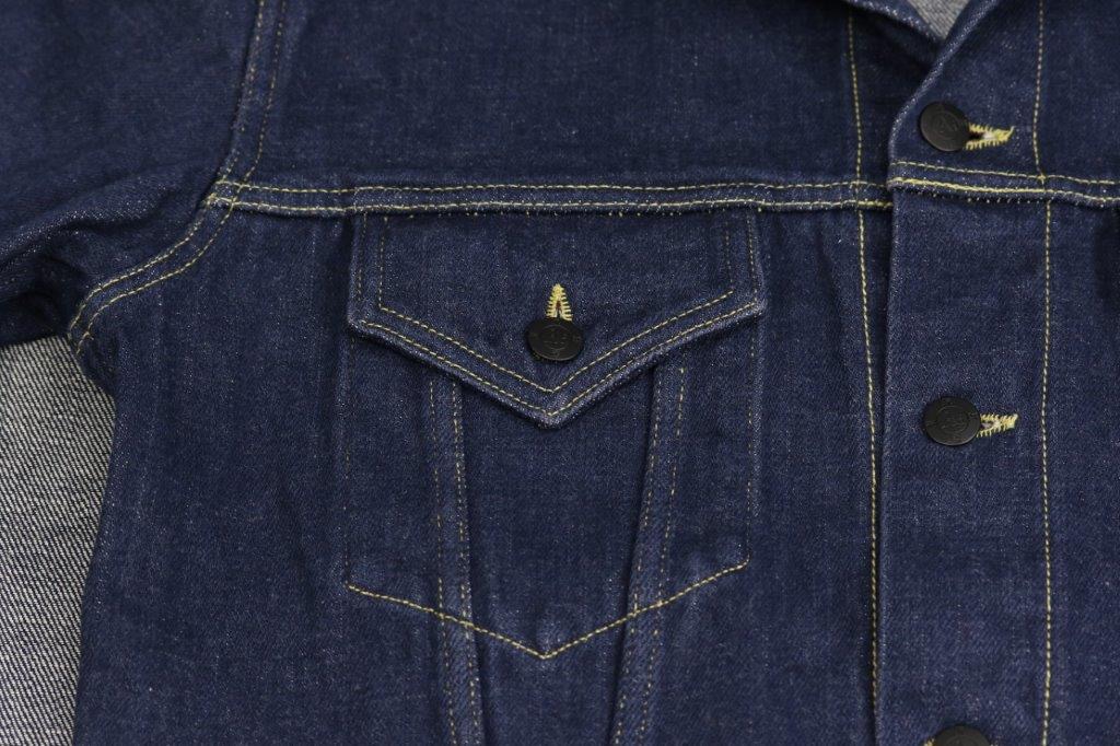 琉球藍染100%で染め抜いたアコークローデニムを、イエローステッチで仕上げたデニムジャケット。