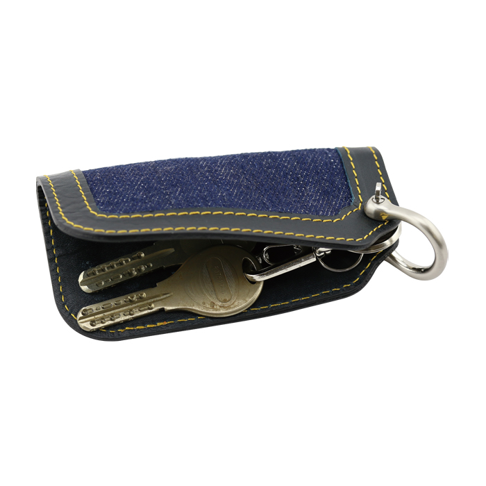 琉球藍染100%デニム生地を使った、無骨なデザインのキーケース。